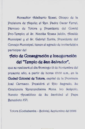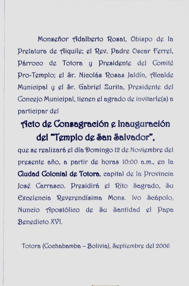• Up • Church Inauguration Announcement • Newspaper Clippings • Poster • Fotos Templo • Fotos Inauguracion • Ceremony and Saints •